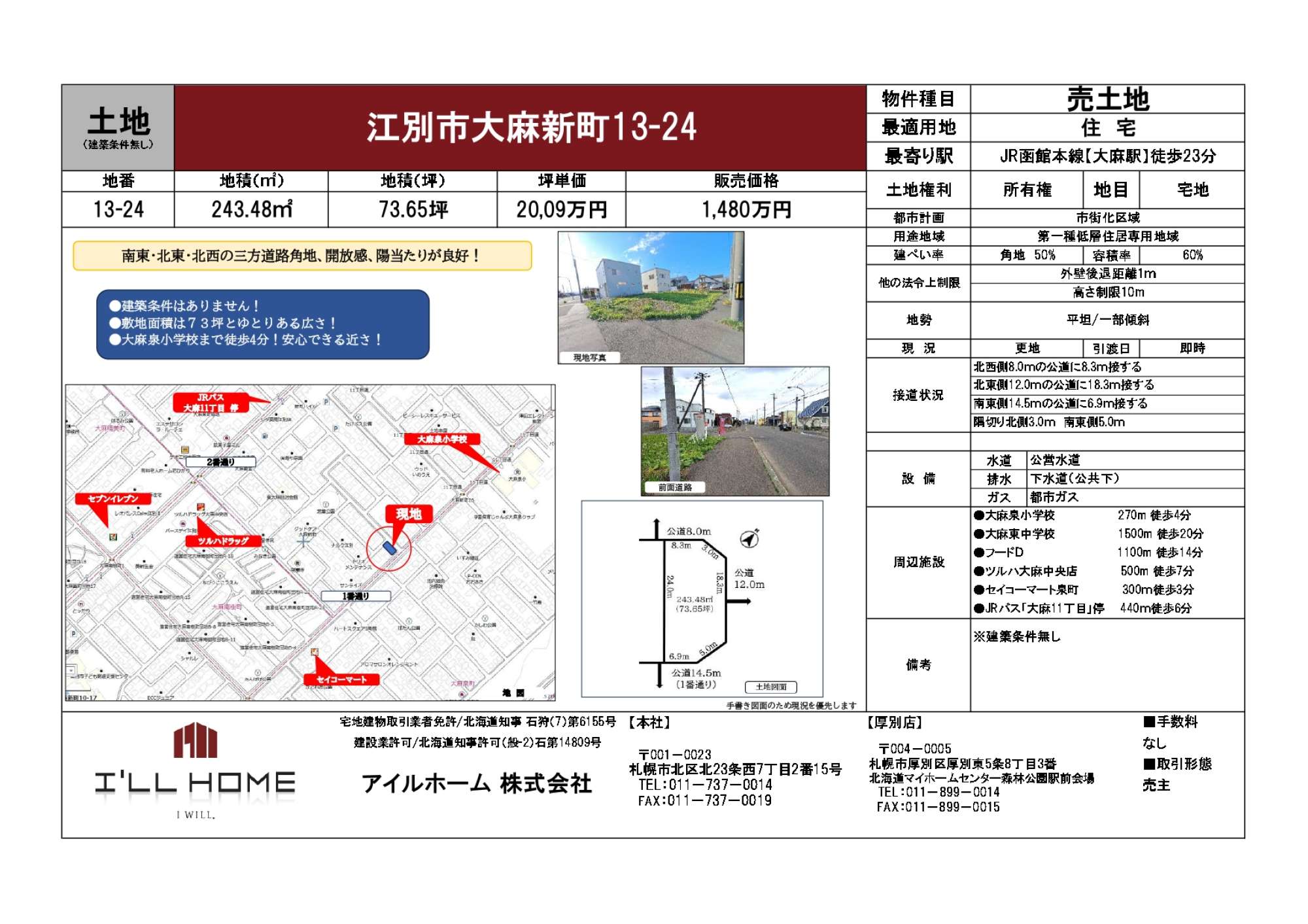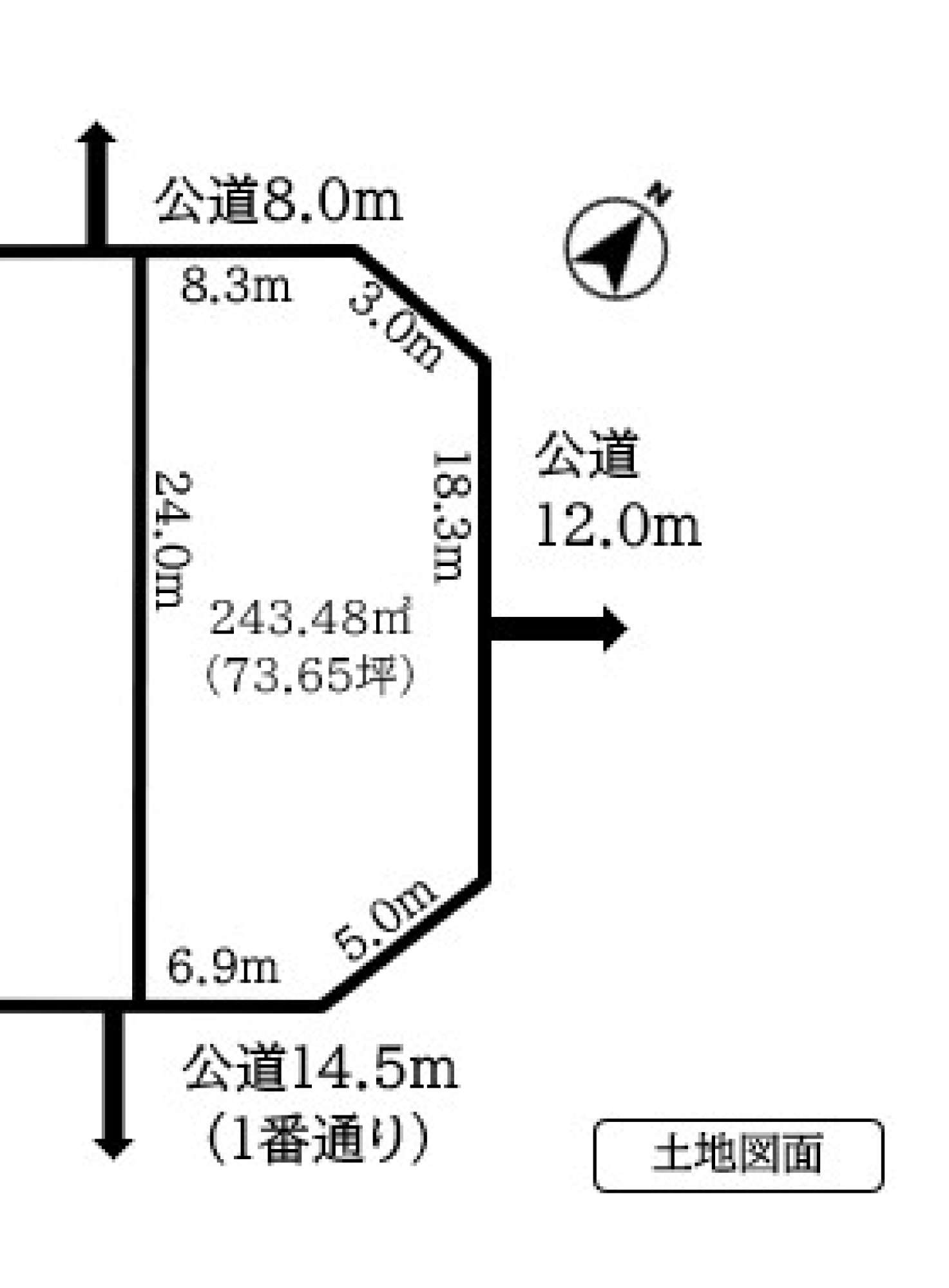 北東側12mの公道に18.3m接する