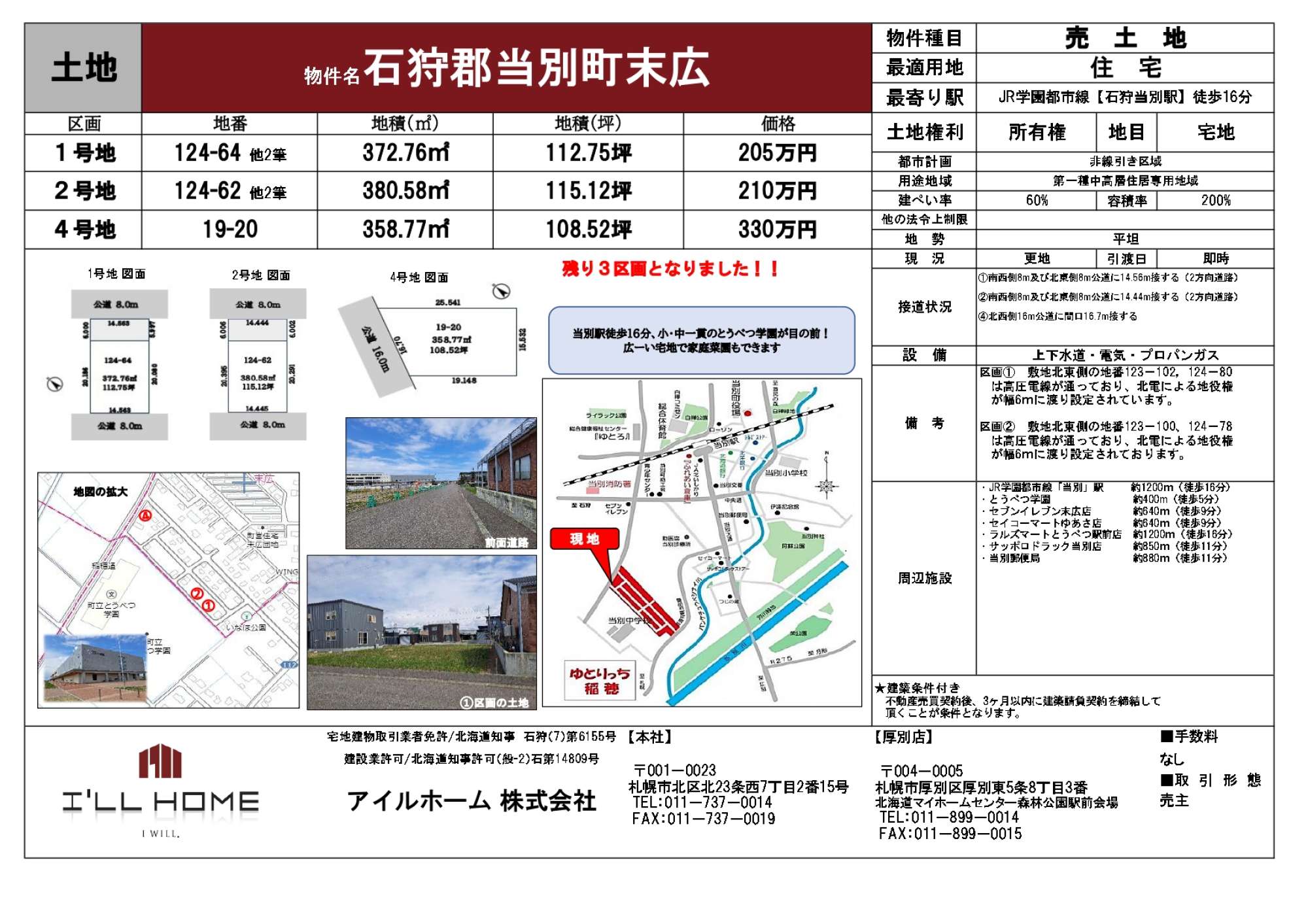 JR「当別」駅まで徒歩16分! 残り3区画となりました。